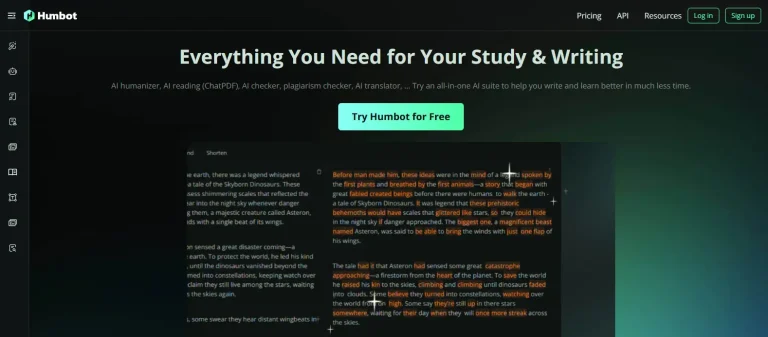 Humbot.ai is an intelligent AI-powered platform designed to improve writing and provide academic assistance. It helps users create clearer and more polished content with tools for paraphrasing, summarizing, and grammar correction, making the writing process quicker and more efficient.